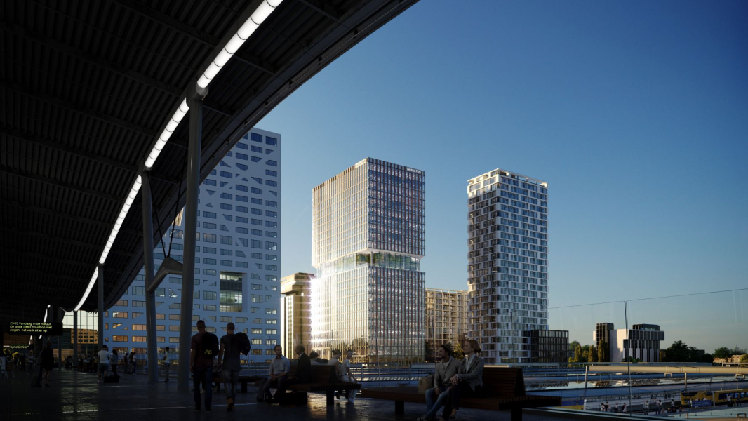 Het laatste woord was aan Victor Everhardt, wethouder Stationsgebied, die de genodigden meenam in de visie van de stad Utrecht en het stationsgebied in het bijzonder. “Utrecht richt zich op gezond stedelijk leven: een goede mix van wonen, werken en recreëren om levendigheid in de stad te stimuleren. Dat is ook in het stationsgebied erg belangrijk. Dit gebouw op deze plek draagt daaraan bij”. Met het hijsen van een bouwdoek door Everhardt is de bouw officieel gestart.